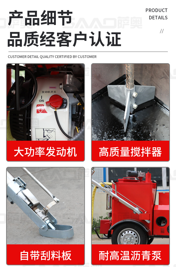 濟(jì)寧薩奧機(jī)械專注于路面養(yǎng)護(hù)機(jī)械研發(fā),60L-650L瀝青灌縫機(jī),道路灌縫機(jī),路面灌縫機(jī),灌縫機(jī)等系列設(shè)備生產(chǎn)廠家,質(zhì)量高、價格低.咨詢電話4008605689